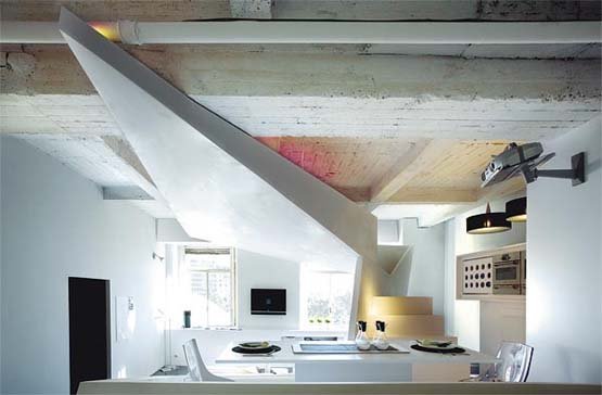 Hogy ma már a belsőépítészet terén szinte nincs megvalósíthatatlan terv ezt támasztja alá Garcia & Ruiz építészek álltal megállmodott és kivitelezett kisméretű nonkonformista appartman , amely futurisztikus térformálásával tényleg meghökkenti még a sokat látott bloggert is. Egy fehér geometrikus szerkezet fut végig a lakáson és öleli át a hálószobát és zseniálisan használja fel a kompozícióhoz a különböző fényeket ill. a tárgyak árnyékait.